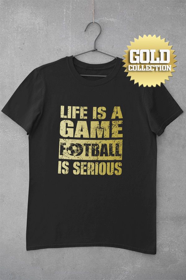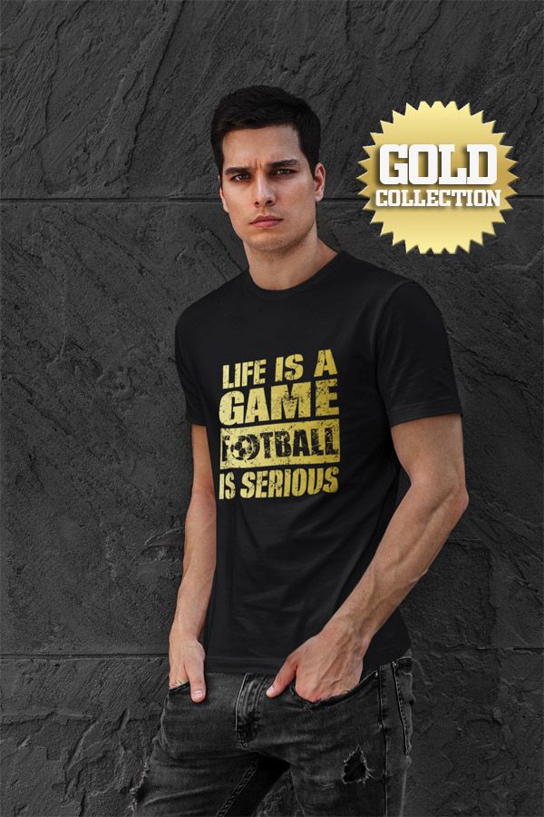 Futbalové tričko Football Is Serious – Life Is A Game pre všetkých, ktorí milujú tento nádherný šport. Teraz aj v špeciálnej a exkluzívnej ZLATEJ edícii. 100% bavlna. Rôzne veľkosti, čierna farba. Kolekcia [PITČ].