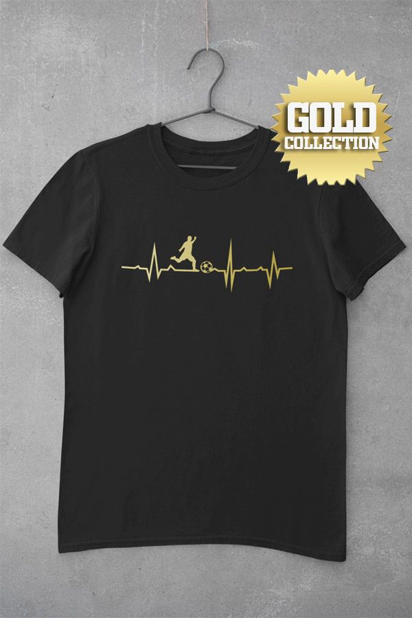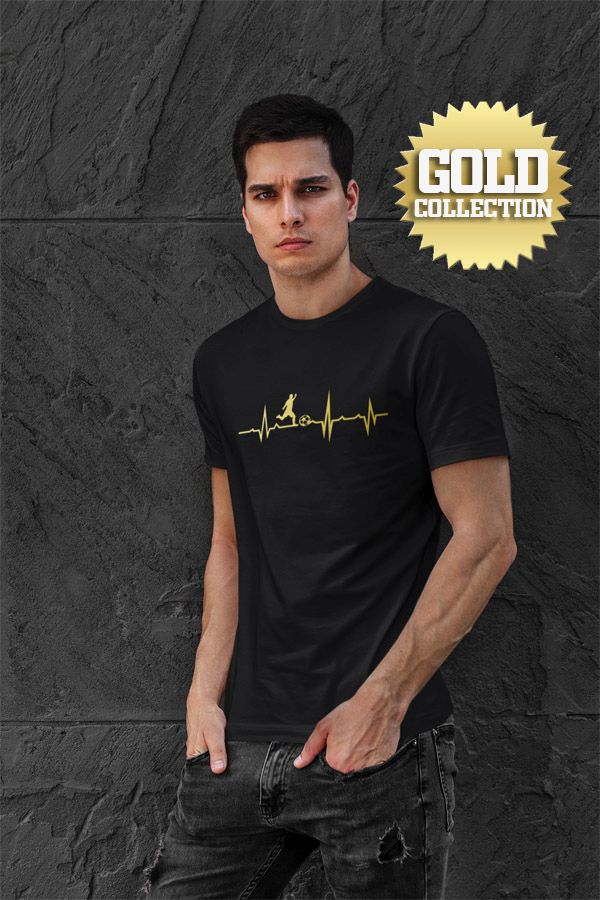 Tričko Futbalový pulz pre všetkých, ktorí milujú tento nádherný šport. Teraz aj v špeciálnej a exkluzívnej ZLATEJ edícii. 100% bavlna. Rôzne veľkosti, čierna farba. Kolekcia [PITČ].
