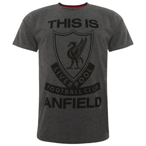 Futbalové tričko pre všetkých fanúšikov Liverpoolu. Veľké logo klubu a nápis This is Anfield. Šedá farba. Oficiálny licencovaný produkt Liverpool FC. 100% bavlna.