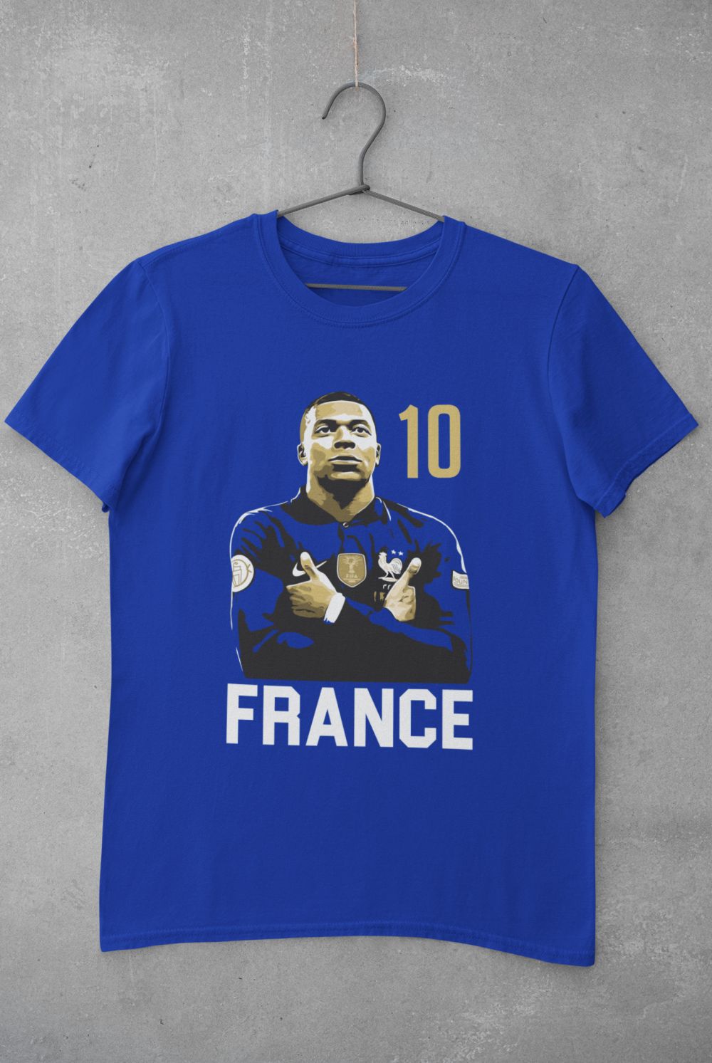 Tričko Mbappe France 10 s motívom ostrostrelca Francúzska a PSG. Pre všetkých fanúšikov futbalovej hviezdy. 100% bavlna. V modrej, čiernej a bielej farbe. Detské a pánske veľkosti. Kolekcia [PITČ].