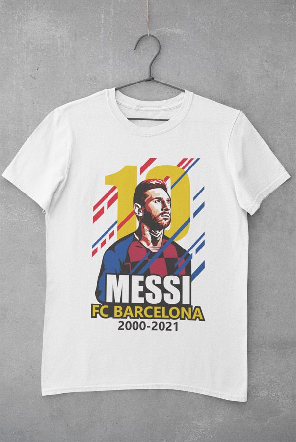 Tričko s motívom Messiho #10 ako pamiatka na jeho 21 rokov v FC Barcelona. Pre všetkých fanúšikov argentínskej superhviezdy. Momentálne najlepší hráč planéty. Biela a čierna farba. 100% bavlna. Kolekcia [PITČ].
