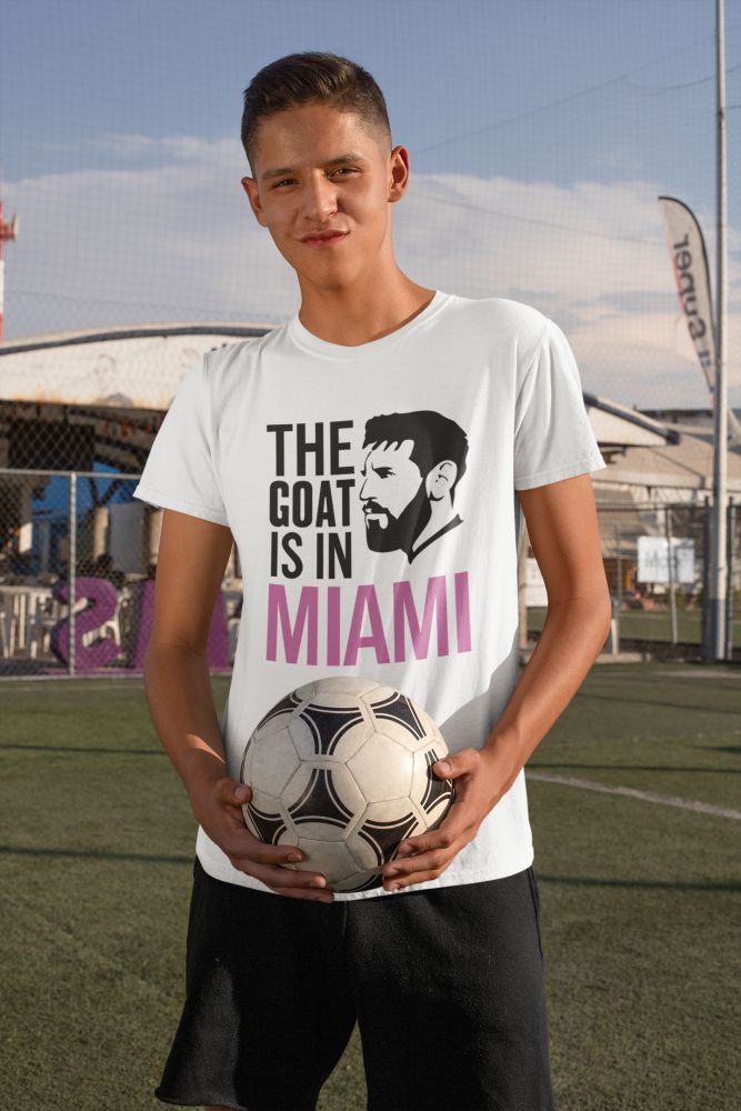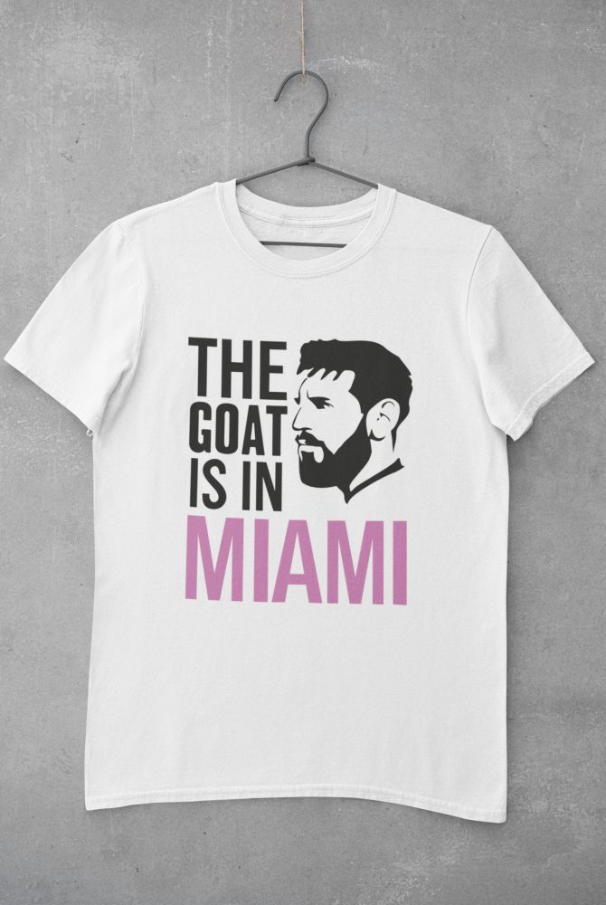 Tričko s motívom Messiho a jeho prezývkou Goat v americkom klube Miami pre všetkých fanúšikov argentínskej hviezdy. Biela a čierna farba. 100% bavlna. Kolekcia [PITČ].