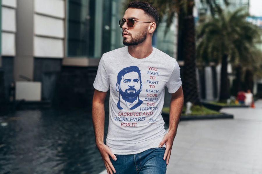 Tričko Messi s mottom Musíte bojovať, aby ste dosiahli svoj sen. Musíte sa pre to obetovať a tvrdo pracovať. Messi je proste najlepší. Kolekcia [PITČ].