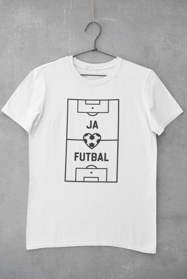 Futbalové tričko s motívom ihriska a textu Ja Milujem Futbal. Pre všetkých futbalových nadšencov, ktorí milujú tento nádherný šport. 100% bavlna. Kolekcia [PITČ].