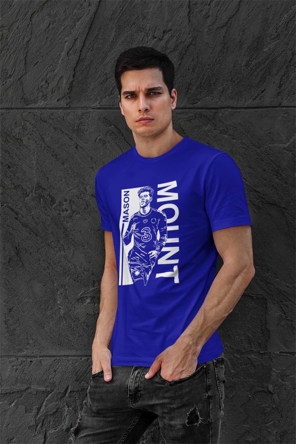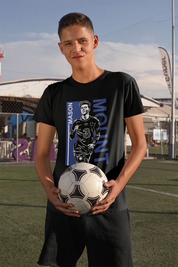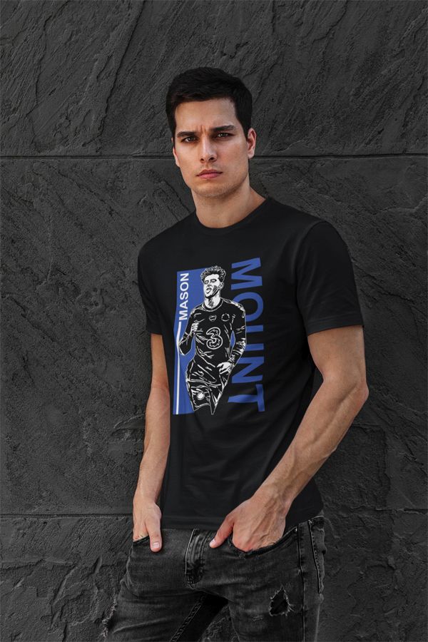 Pre všetkých fanúšikov Chelsea a špeciálne Mason Mounta. Mladý odchovanec je najnovšia hviezda The Blues. Modrá alebo čierna farba. 100% bavlna. Kolekcia [PITČ].