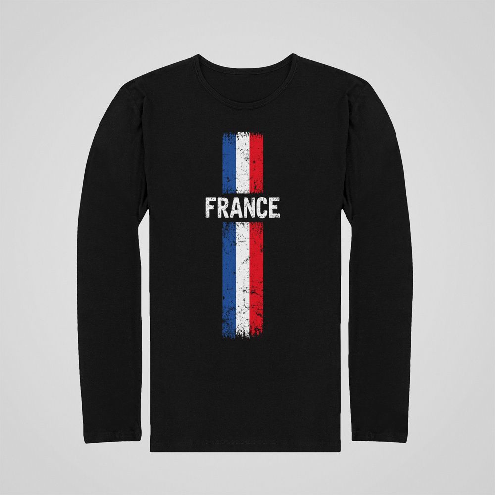 Tričko s dlhým rukávom Francúzsko s vlajkou s motívom francúzskeho futbalu. Pre všetkých fanúšikov Francúzska. 100% bavlna. V čiernej a bielej farbe. Detské veľkosti. Kolekcia [PITČ].