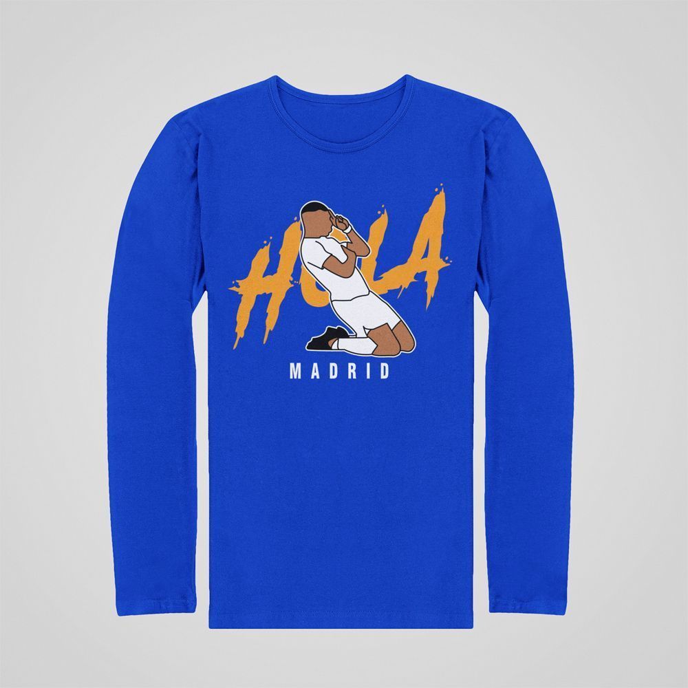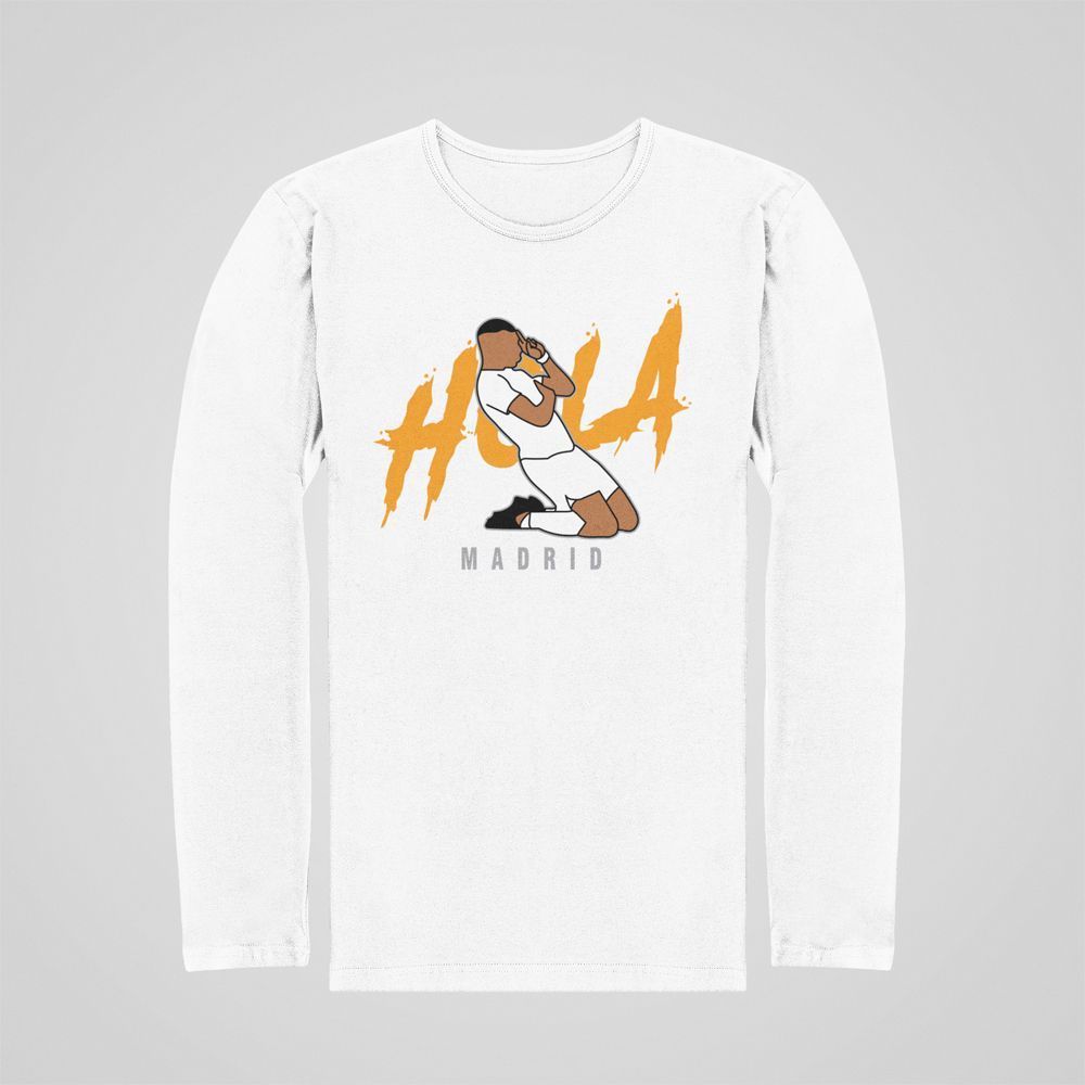 Bavlné tričko s dlhým rukávom Hola Madrid pre všetkých fanúšikov Realu Madrid a K. Mbappého. Potláčame na biele, modré a čierne tričká. 100% bavlna. V ponuke sú detské veľkosti od 8 rokov do 12 rokov.