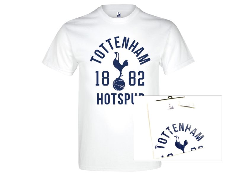 Tričko pre vetkých fanúšikov Tottenhamu s nápisom 1882 Hotspur, názvom tímu, logom a dátumom založenia klubu. 100% bavlna. Biela farba. Oficiálny licencovaný produkt Tottenhamu