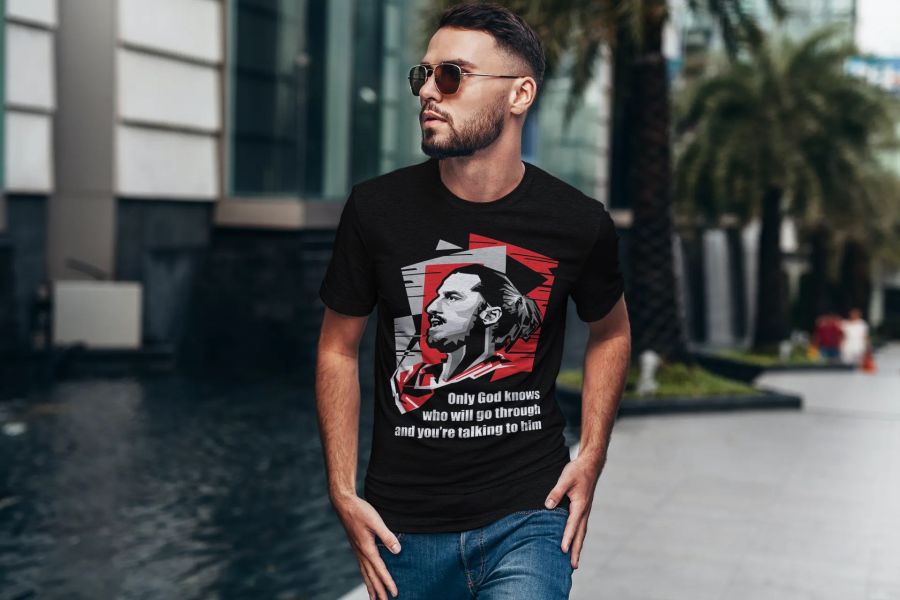 Tričko Zlatan Only God Knows s citátom Iba Boh vie, kto postúpi a ty si ním hovoríš. Ibra je proste legenda a futbalová hviezda najväčšieho rangu. 100% bavlna. Kolekcia [PITČ].