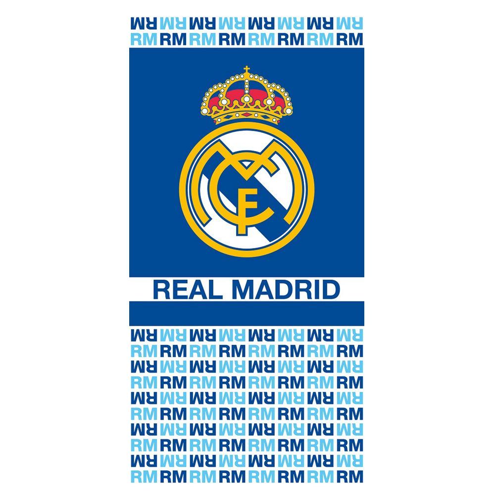 Uterák madridského Realu modro-bielej farby s veľkým logom, malými písmenami RM a nápisom Real Madrid pre všetkých fanúšikov Bieleho baletu. Veľkosť 70cm x 140cm. Materiál: 100% bavlna. Oficiálny produkt licencie Real Madrid.