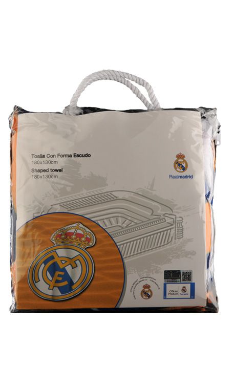 Uterák s motívom Realu Madrid v tvare loga klubu okrúhleho tvaru. Uterák má výšku 180cm a šírku 130cm. Unikátny kúsok pre každého Madridistu. Materál: 100% mikrovlákno. Oficiálny produkt licencie Real Madrid.