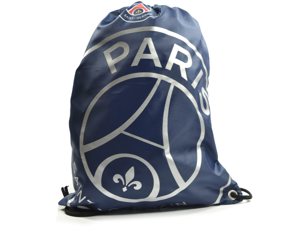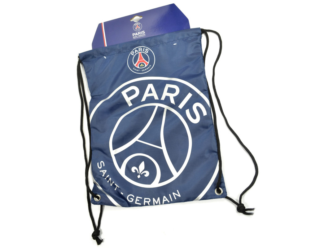 PSG vak na chrbát so šnúrkami pre všetkých fanúšikov Parížanov. Modrá farba s bielym veľkým znakom, farebným logom a nápsom PARIS SAINT-GERMAIN. 100% autentický, oficiálny, licencovaný, originálny produkt PSG.